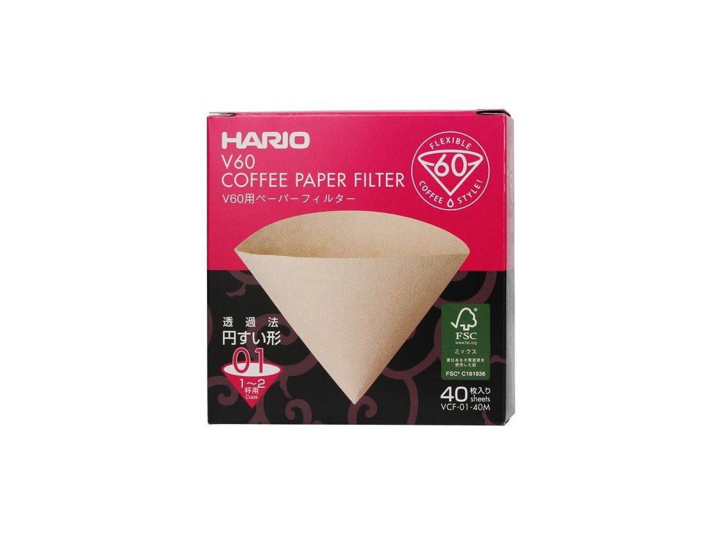 Sada papierových filtrov Hario V60-01 40ks určená pre Dripper. Hnedé papierové filtre pre prekvapkávanú kávu v dripperi veľkosti 01.